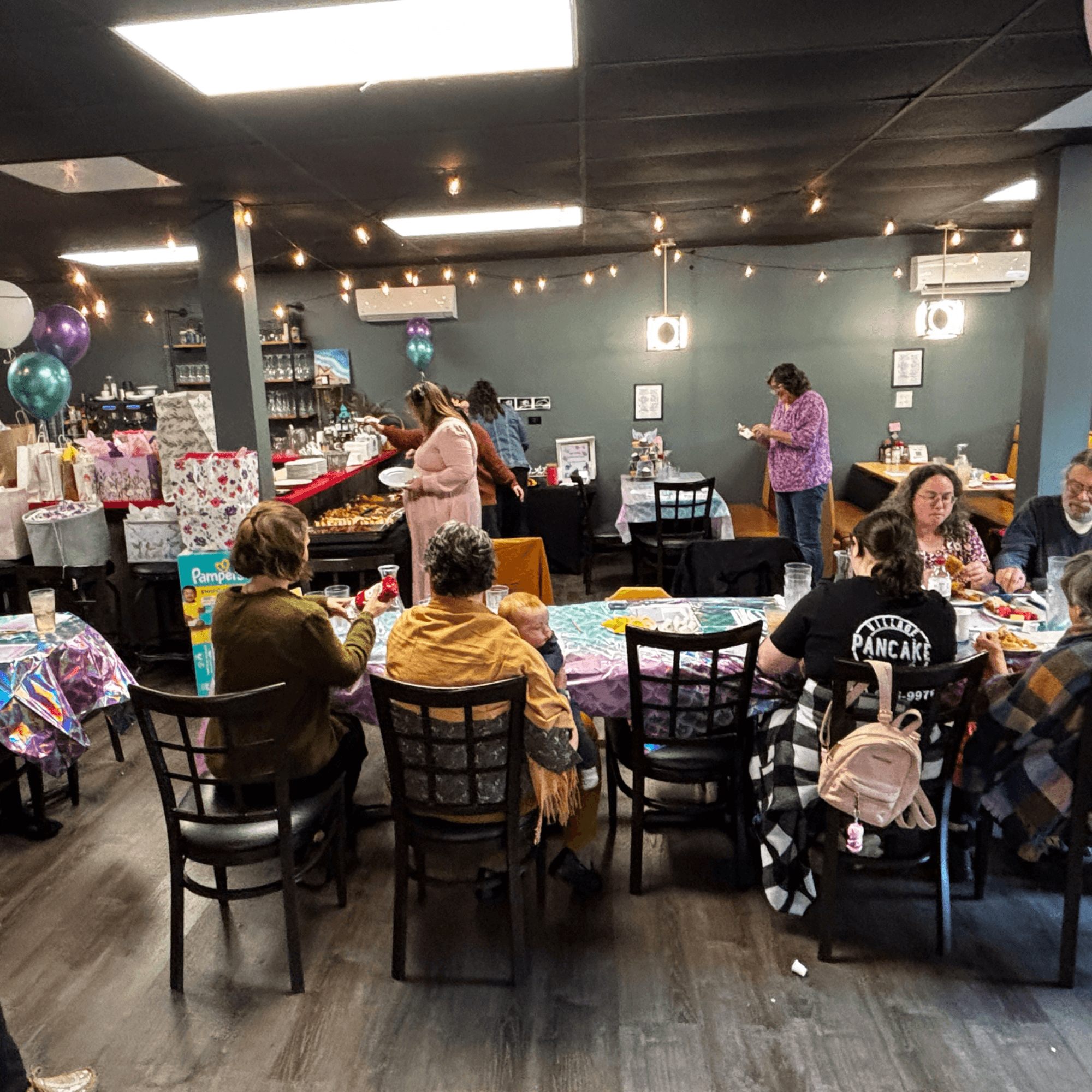 We have an extensive list of items on our catering menu ready for your event, whether it be take-out or here in our event room, Julian's Room. In lieu of a "room fee", we charge $5 per person to use our event space, and this charge covers unlimited coffee, tea, or soda for your guests.
